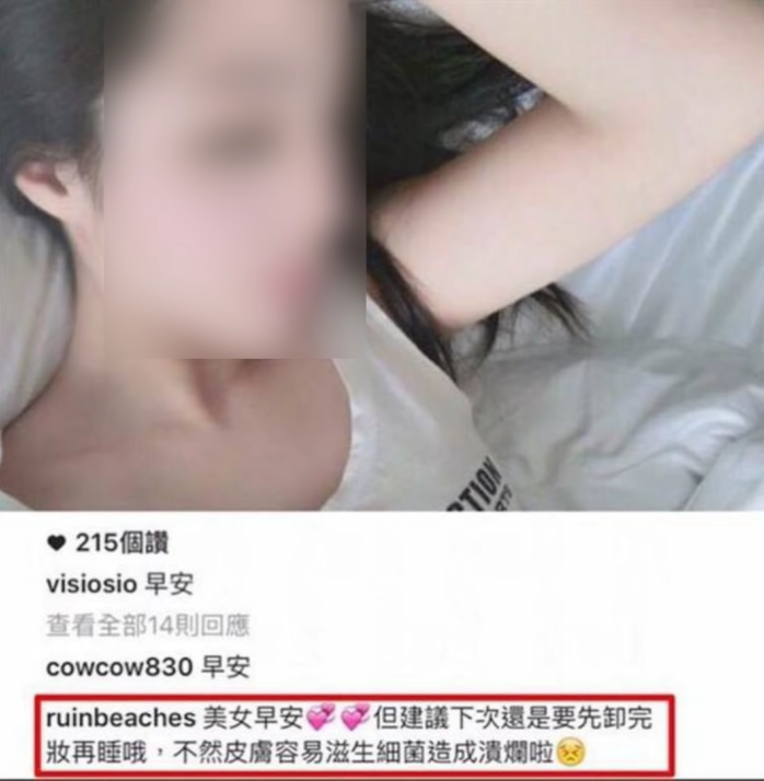 一般來說如果人只要是剛睡醒就應該會有剛睡醒的樣子,而這種布置成美美的模樣不可能是剛睡醒的、這就形成了一種矛盾。而被紅框圈起來的留言就是點出矛盾營造玩笑的案例,這位網友用「先卸完妝在睡」來諷刺此網美先化妝然後拍的照片,這種「有梗的」留言就容易被注意。