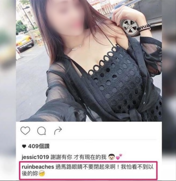 這張照片是在馬路上拍的,而且照片裡的女生也閉著眼睛,因此這位仁兄就針對他所看見的事作幽默開玩笑的留言。