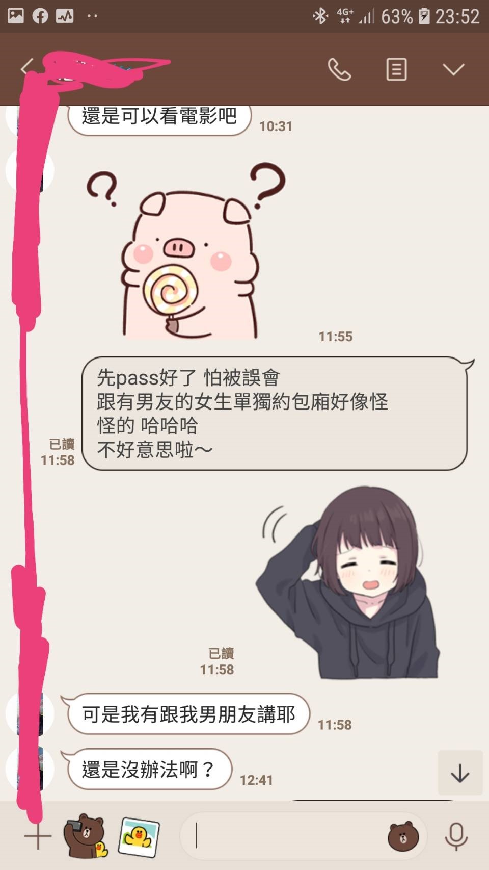 到了要約會的前一兩天可以說:「先PASS好了,我覺得跟有男友的女生約包廂(或其他地點)有點親密不是很OK。」(圖一)接著觀察她的反應是會繼續盧你要約會嗎?還是她就接受自己是個有男友的女生退回去呢?