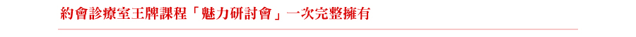 在曖昧的過程中,總是有很多動作是細微但是卻至關重要的,因此在達陣藍圖中我將和女Model示範在約會的「關鍵時刻」,該如何使用肢體、言語等方式正確而且「幾乎不會被拒絕」的進行曖昧升溫的動作,從實際的互動中獲得前所未有的細節,讓你在未來和女生互動時,能夠用「完全不怕被拒絕」的方式成功「達陣」。 | ![]() |